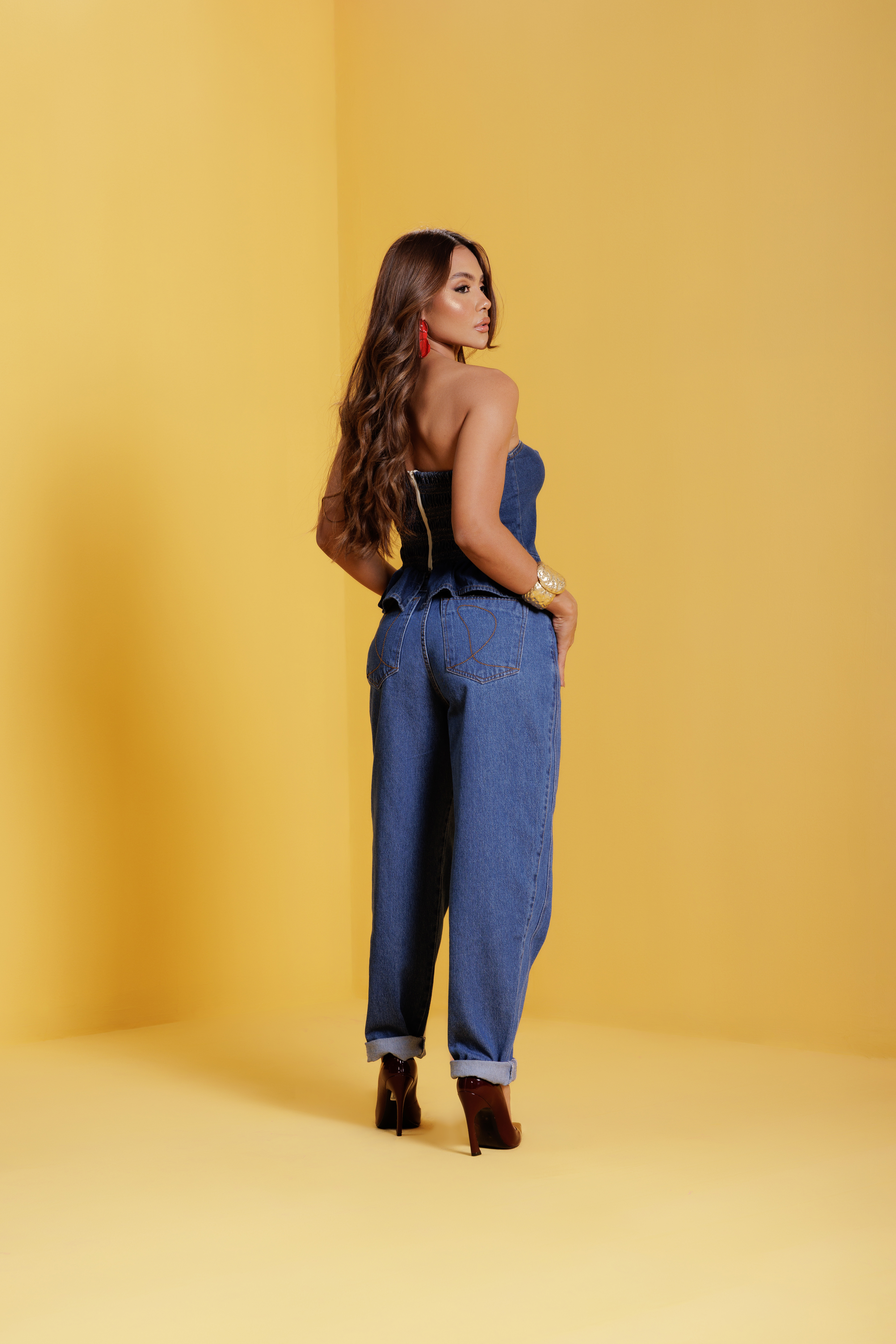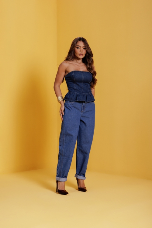Peplum Thay tomara que caia com leve babado na barra e recortes que valorizam o shape. Possui zíper metálico destacável nas costas e elástico para melhor ajuste. Confeccionado em tecido 100% algodão.