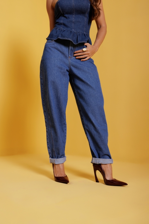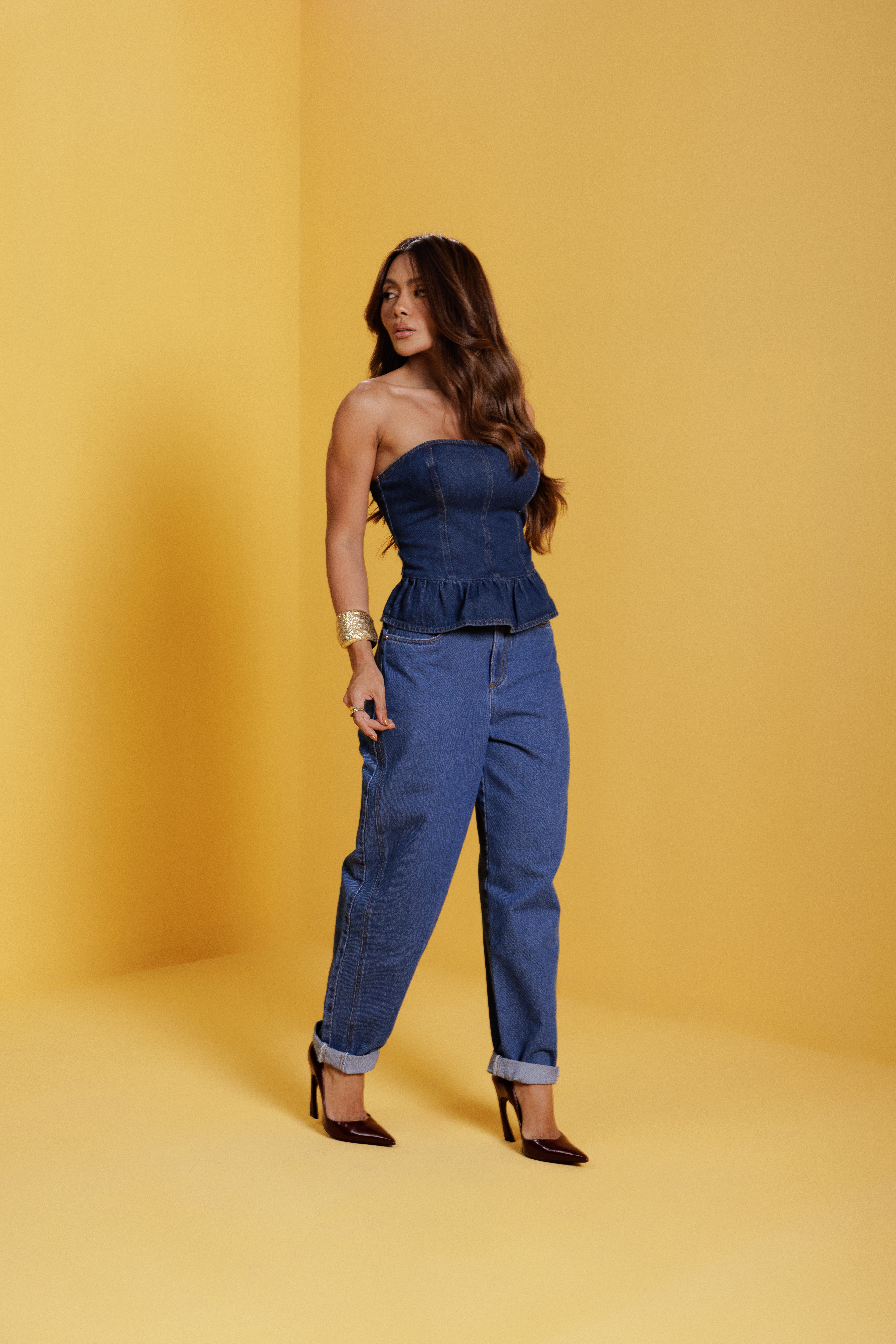 Calça Ballon Thay, com recortes de costura que se deslocam para a frente e barra levemente afunilada. Confeccionada em tecido 100% algodão.