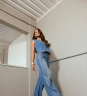 Calça Mariana estilo wide leg, com modelagem ampla e recorte lateral decorado com aplicação de taxas. Possui cós alto, bolsos frontais e traseiros e fechamento por zíper e botão. Confeccionada em tecido 100% algodão.