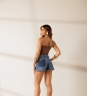 Short Pump em 100% algodão, com aplicação de strass na parte frontal. Possui lateral assimétrica, bolso traseiro reserva e barra desfiada, trazendo um visual moderno e cheio de estilo.