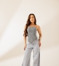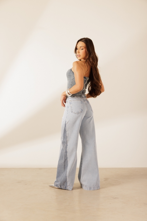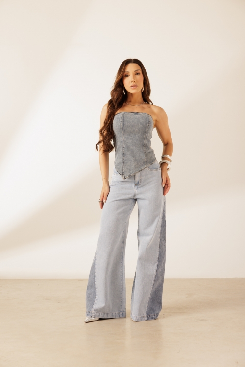 Top Candy, com recortes aparentes e barra assimétrica em ponta frontal. Possui zíper destacável nas costas com fenda logo abaixo. Confeccionada em tecido 97% algodão e 3% elastano.