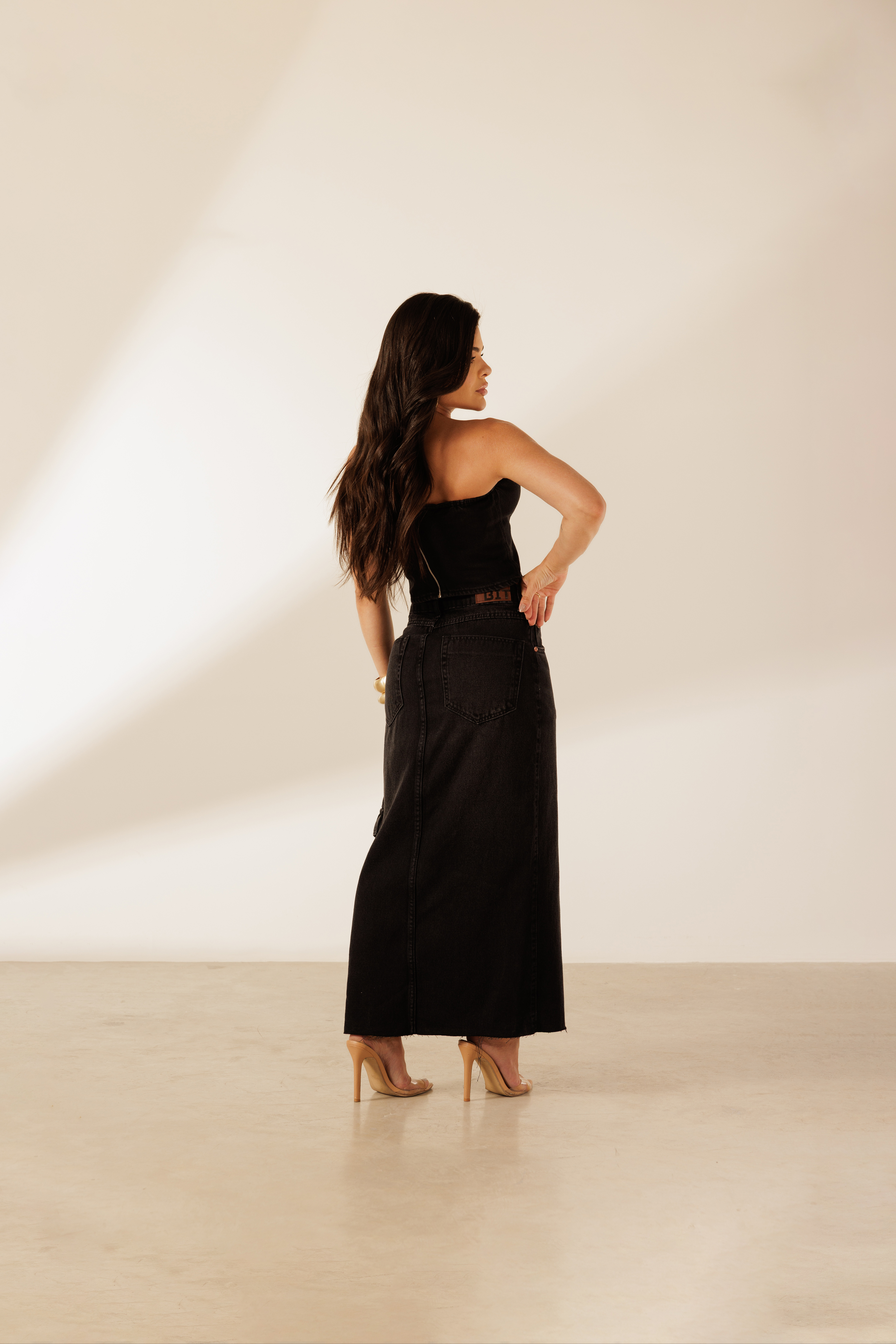 Saia Mid Cargo, com fenda frontal e bolsos laterais com aba. Confeccionada em tecido 100% algodão.