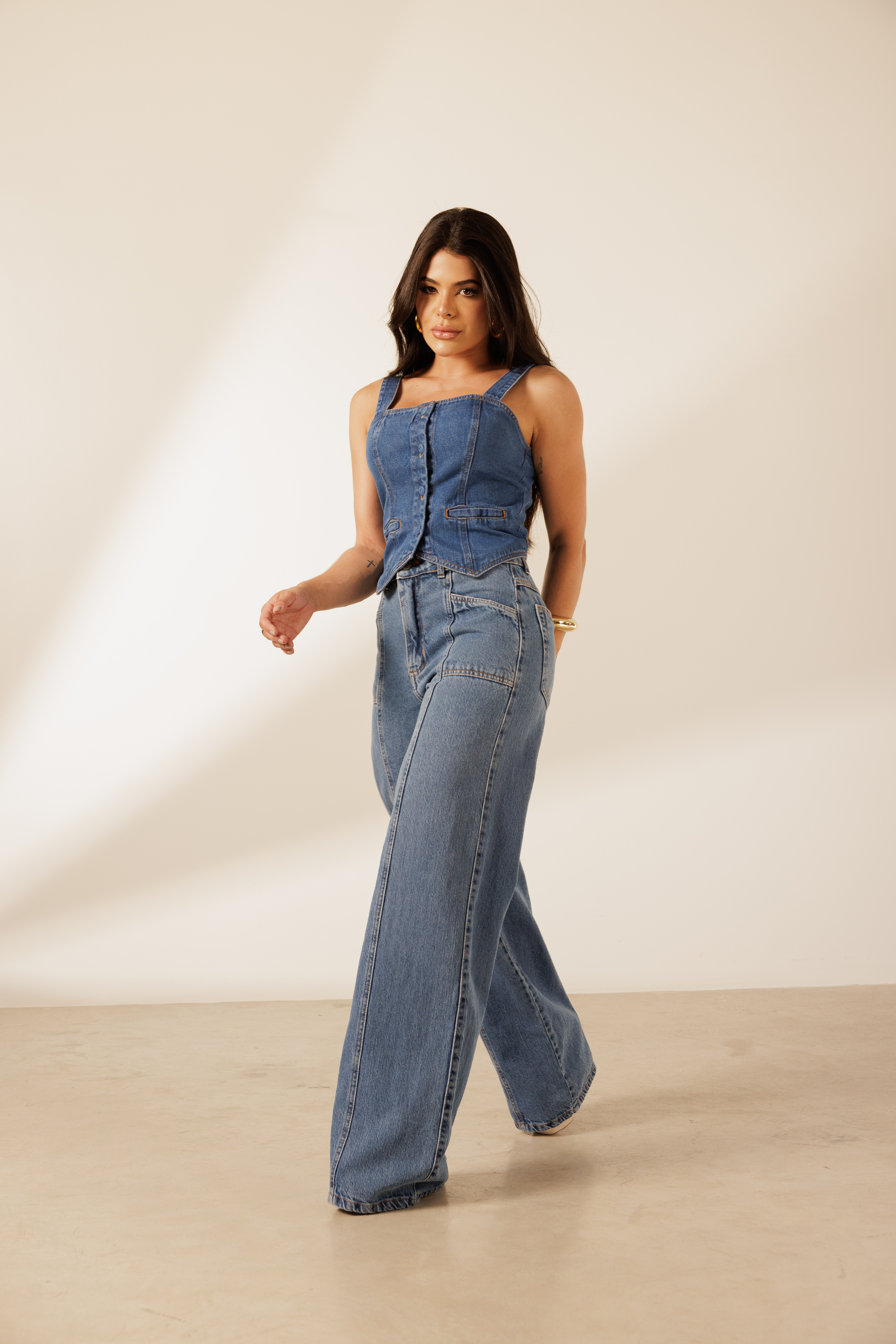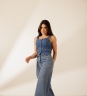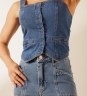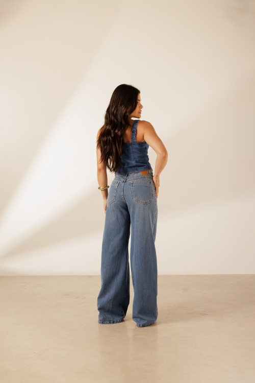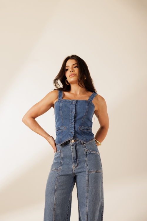 Blusa Recortes Ellen com botões bombe frontais e barra levemente assimétrica. Modelagem ajustada com alças largas. Confeccionada em tecido 100% algodão.