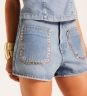 Short Ale com tachinhas aplicadas nos bolsos frontais. Modelagem reta, cós alto e barra levemente desfiada. Confeccionado em tecido 100% algodão.