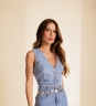 Short saia jeans curtinho com bolso relógio e modelagem ajustada. Possui barra com bainha aparente e cós com passantes. Um básico com presença, fácil de combinar no dia a dia.