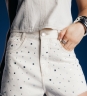 Short Beatriz com aplicação de metais na parte frontal e acabamento desfiado na barra. Nas costas, destaque para os bolsos em formato de estrela. Em tecido 100% algodão.