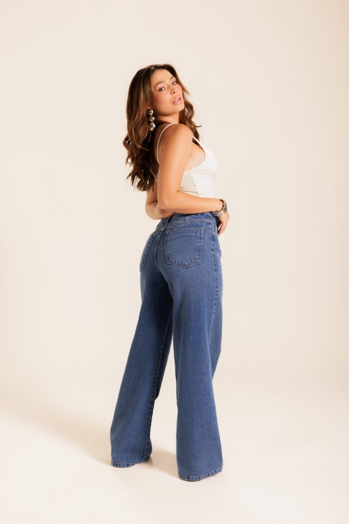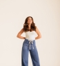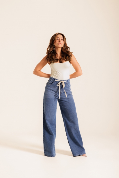 Calça Alice de modelagem ampla com cadarço no cós frontal, trazendo um toque descomplicado ao visual. Confeccionada em tecido 100% algodão, com bolsos tradicionais..