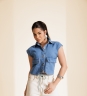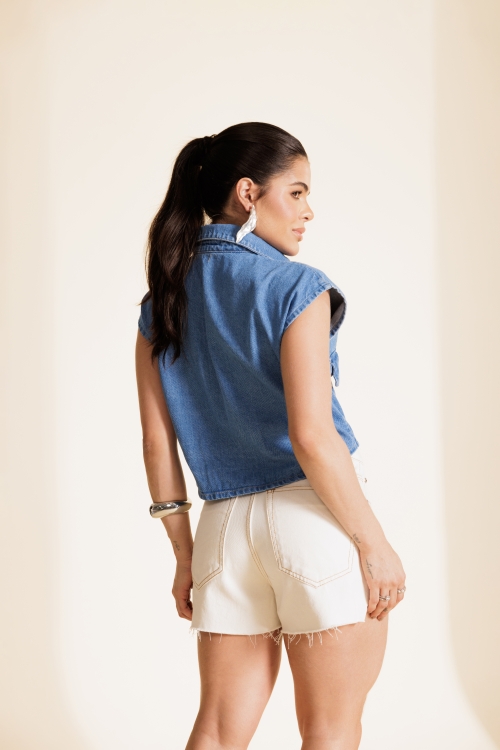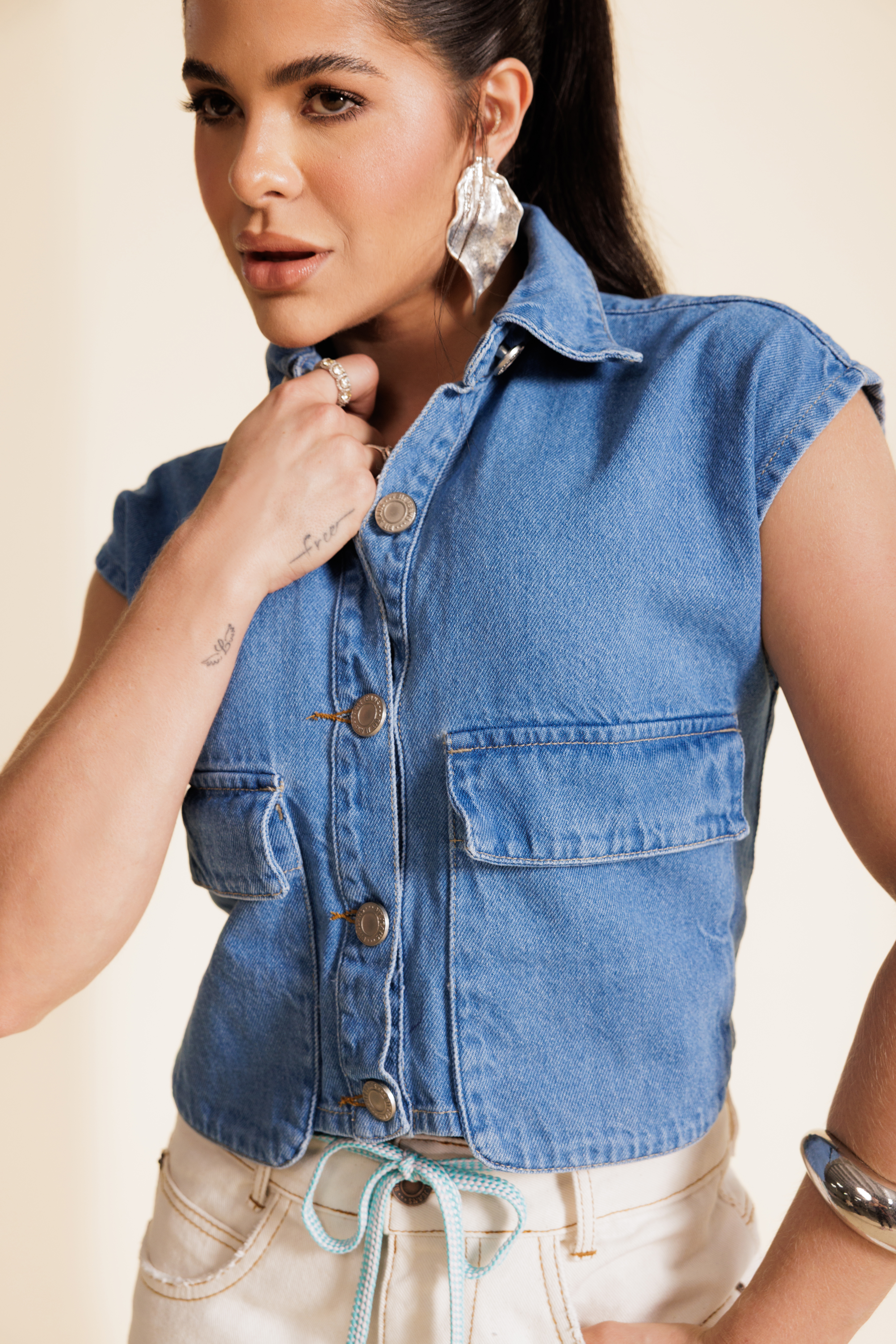 Blusa Pocket com gola clássica, fechamento frontal por botões e modelagem reta. Possui dois bolsos utilitários na frente com lapela e detalhe de costura marcada. Perfeito pra compor looks versáteis com pegada cool.