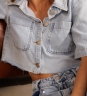 Cropped Mirage com modelagem de camisa, sem pé de gola e com fechamento frontal por botões. Possui bolsos utilitários na frente e barra desfiada, trazendo um visual descomplicado e atual.
