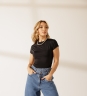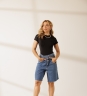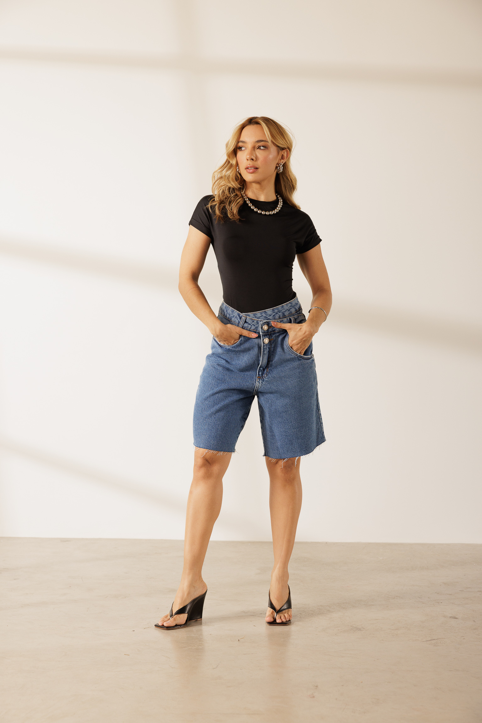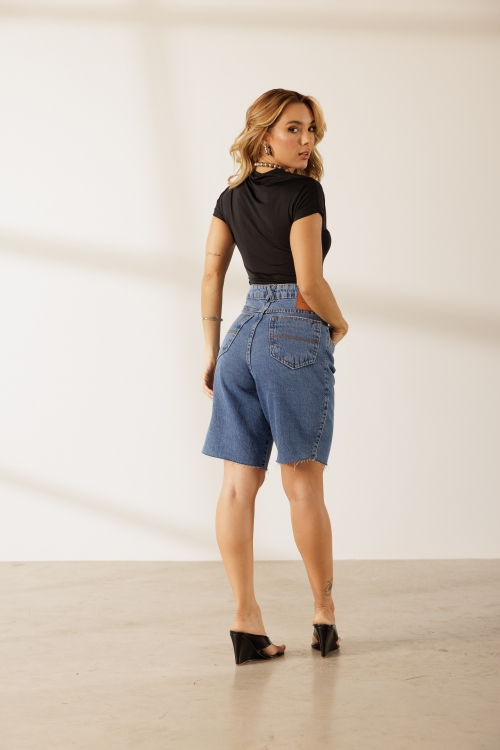 Body Sofia em poliamida com manguinhas curtas, gola fechada e modelagem justa ao corpo. Fechamento por botão de pressão, ideal pra montar looks práticos e estilosos.