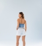 Bermuda Flow em 100% algodão, com comprimento médio e fendas laterais. Acabamento de barra desfiada, trazendo um visual casual e despojado.